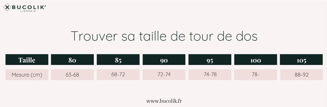Vous trouverez ci-dessous un tableau vous permettant dans un premier temps de calculer sa taille de soutien-gorge en fonction de votre tour de dos.